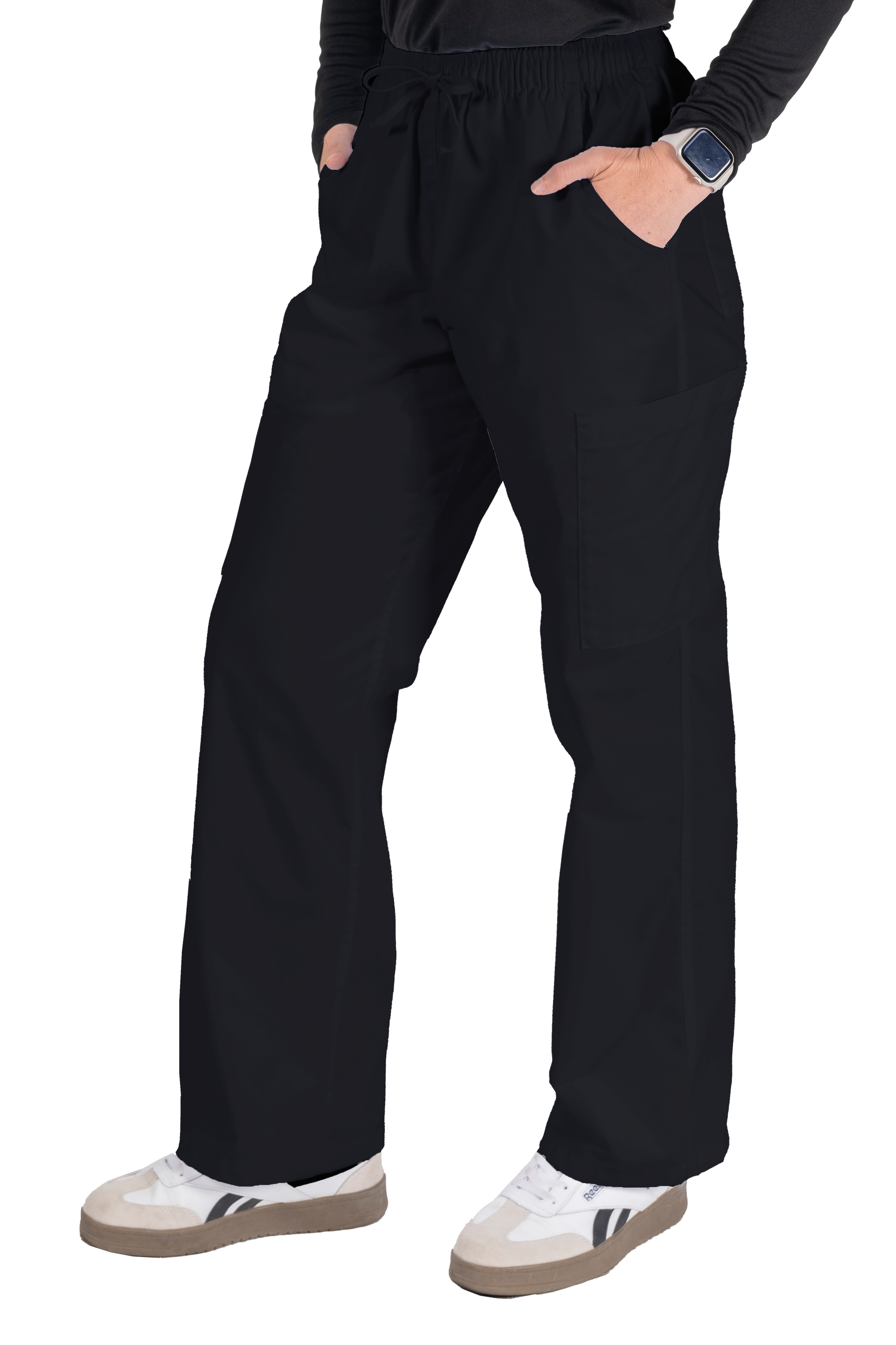 Our best seller, designed for function and comfort. Scrub pant style, full elastic waist, front drawstring, two generous front pockets, one back pocket & one thigh pocket with closure.