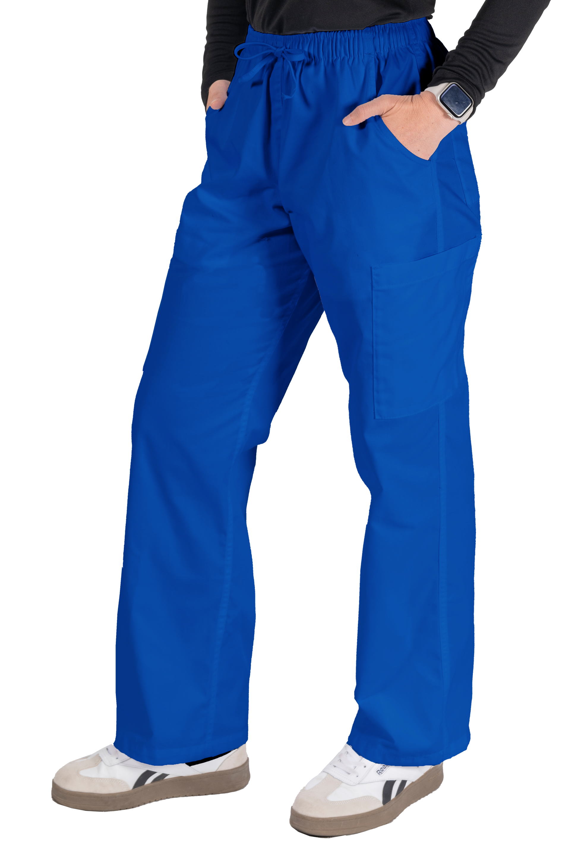 Our best seller, designed for function and comfort. Scrub pant style, full elastic waist, front drawstring, two generous front pockets, one back pocket & one thigh pocket with closure.